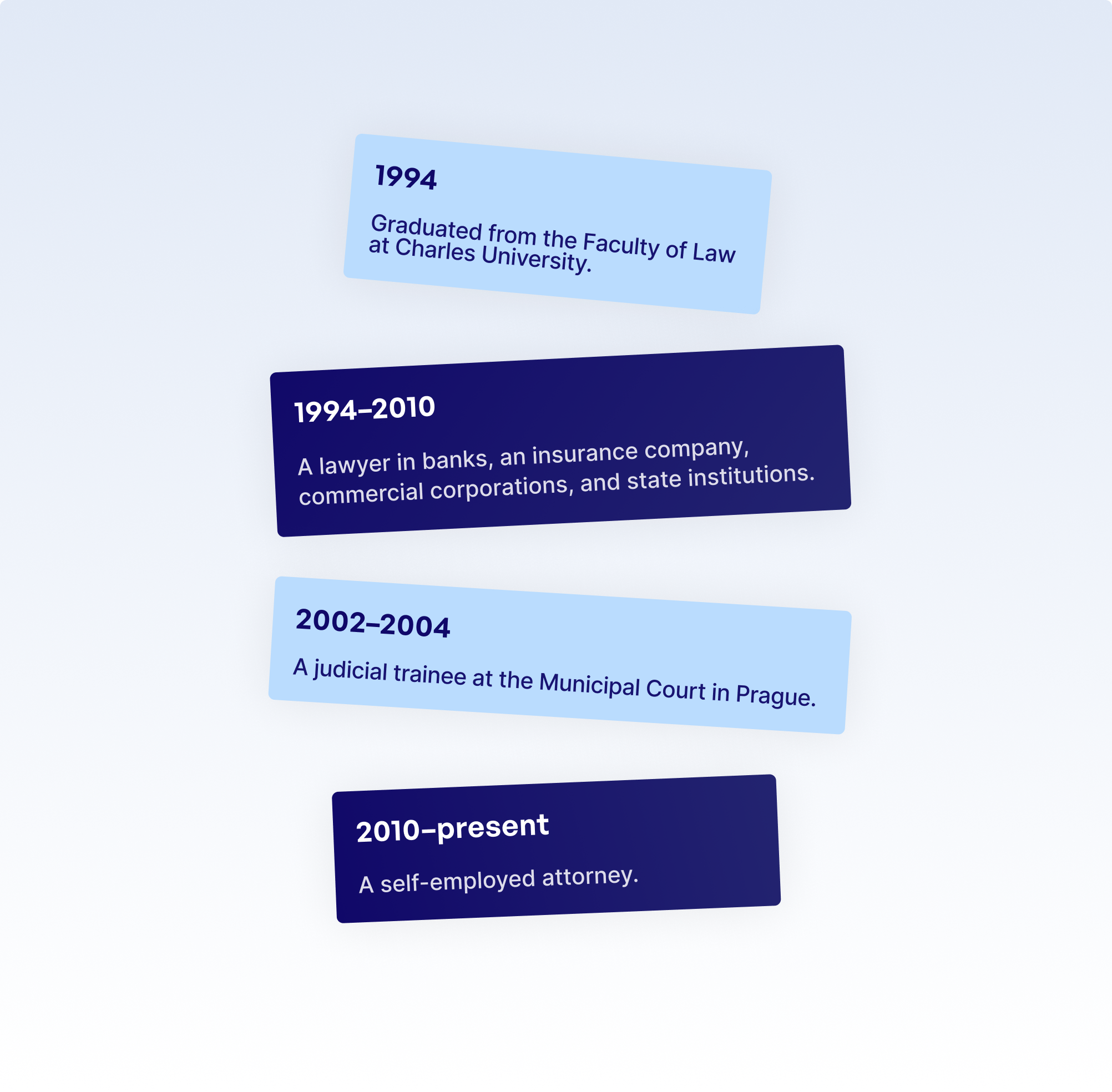I studied at the Faculty of Law of Charles University in Prague and graduated in 1994, when I passed the final state exams, defended my bachelor's thesis, and obtained a Master's degree in Law.